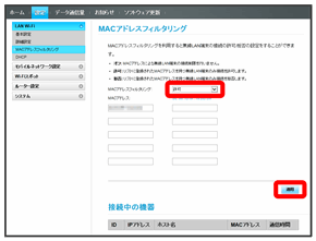 無線LAN端末のMACアドレスを登録して無線LAN接続の許可/禁止を設定し、セキュリティー機能を強化できます。