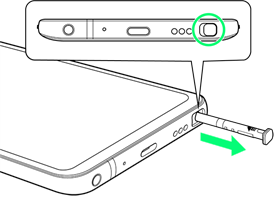 - スタイラスペンのキャップに爪をかけてまっすぐに引き出し、本機からスタイラスペンを取り外す