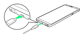 充電が始まると、電源OFF時または画面消灯時は、通知LEDが点灯します。充電が完了すると、通知LEDが消灯します。