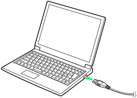- パソコンのUSB端子に、PC接続用USB Type-CケーブルのUSBプラグを差し込む