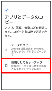 - データのコピーをタップすると、Google アカウントを設定しているほかの端末からデータをコピーできます。画面の指示に従って操作してください。