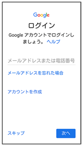 - Google アカウントを設定しないときは、スキップをタップします。