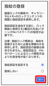 - 指紋の登録画面で次へ