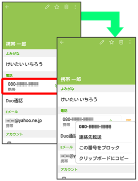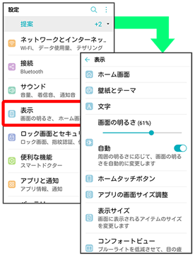 また、画面をロングタッチすると利用できる設定や項目が表示される画面もあります。