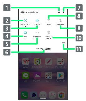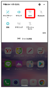 通知パネルを下にドラッグすると、クイック設定パネルを開くことができます。クイック設定パネルでは、アイコンをタップして機能のON/OFFなどを設定できます。