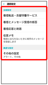 通話に関する設定ができます。設定できる項目は次のとおりです。