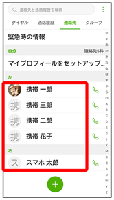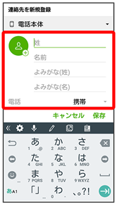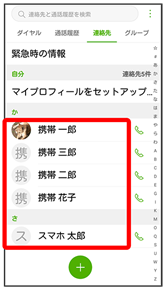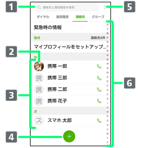 | 名前や電話番号などを入力して連絡先を検索します。 | ||