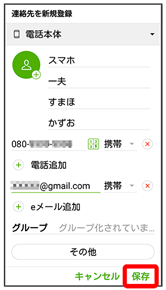 電話帳に電話番号やメールアドレスなどを登録できます。