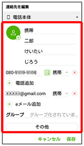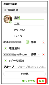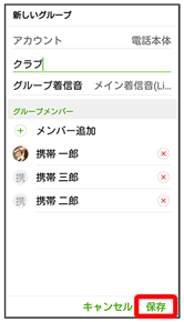 - 既に登録されているグループ名(「緊急連絡先」/「家族」/「同僚」/「友達」)は編集できません。