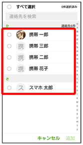 - すべて選択をタップすると、すべての連絡先を選択/解除できます。