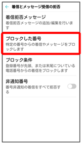 また、電話番号を指定してブロックすることで、着信やSMSの受信を拒否することができます。