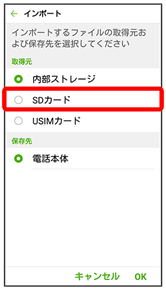 SDカードに保存(バックアップ)した電話帳データを読み込み(インポート)できます。