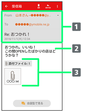 - メール詳細画面で会話型で見る