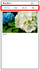 - 「アルバム」/「写真」/「思い出」/「再生」タブをタップ