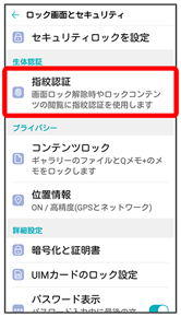 - 指紋センサーに指を触れたまま指紋の登録や認証を開始すると、起動できない場合があります。指を離し、再度操作してください。