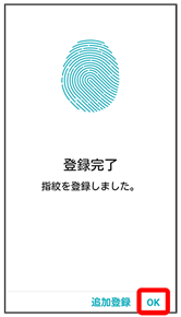- 続けて別の指紋を登録する場合は、追加登録をタップします。