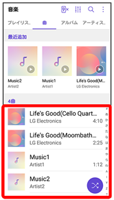 - ミュージックライブラリ画面で曲名/アルバム名/アーティスト名/ジャンル名をロングタッチ