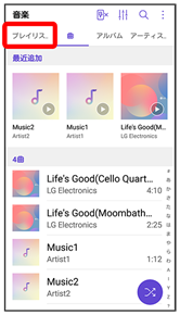 - ミュージックライブラリ画面で「プレイリスト」タブをタップ
