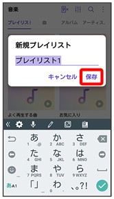 - 新規プレイリストをタップすると、新たにプレイリストを作成して、そのプレイリストに曲を追加できます。