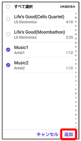 追加したいリストをタップしても、曲をプレイリストに追加できます。 - すべて選択をタップすると、すべての曲を選択/解除できます。