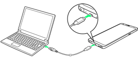 - 本機とパソコンをPC接続用USB Type-Cケーブルで接続する