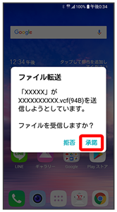 Bluetooth®機器からデータの受信要求があると、画面に通知が表示されます。次の操作を行うと、受信することができます。