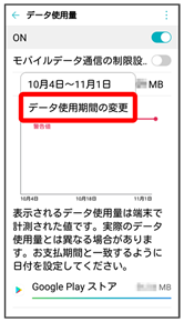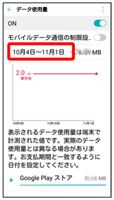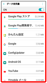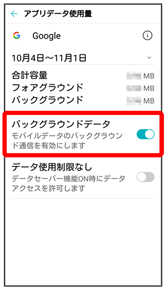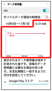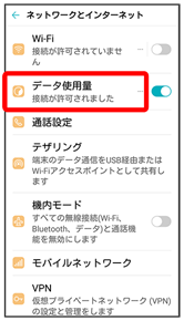 | データ使用量 | モバイルデータ通信の使用量を確認したり、使用を制限することができます。 | |