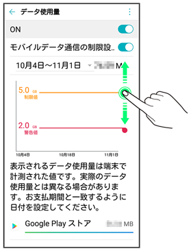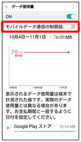モバイルデータ通信の使用量を確認したり、使用を制限することができます。