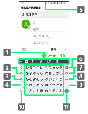 | 入力モード | 入力する文字種を切り替えます。 | |