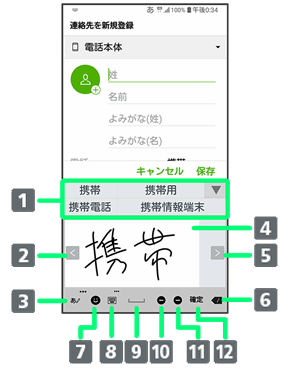 をタップすると、手書き入力キーボードが表示されます。指やスタイラスペンを使って、手書きで文字を入力できます。