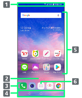 | ホーム画面シートが複数あるときに、現在の表示位置を表示します。 | ||