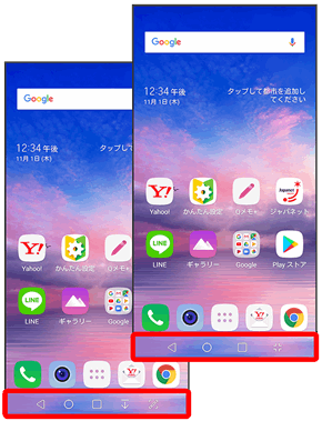 ホーム画面シートが複数あるときにホーム画面を左右にフリック/スワイプすると、ホーム画面シートを切り替えることができます。