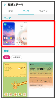 ホーム画面やロック画面の壁紙、アイコンやメニューの文字色などのテーマを変更できます。