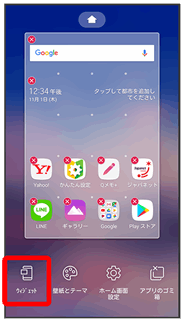 | アプリのショートカットやフォルダ、ウィジェットを自由に配置できます。 | ||