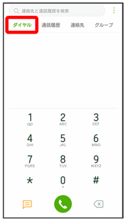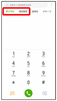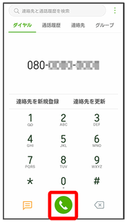 電話をかけます。また、発信履歴がある場合、電話番号未入力のときにタップすると最新の発信履歴が入力されます。