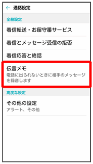 オプションメニューが表示されます。オプションメニューでは短縮ダイヤル、184追加、186追加、既定の画面、Qスライド、通話設定などができます。