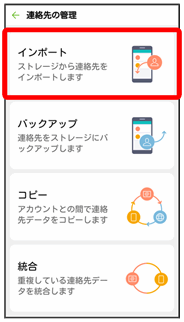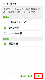 SDカードに保存(バックアップ)した電話帳データを読み込み(インポート)できます。