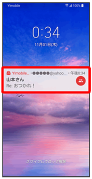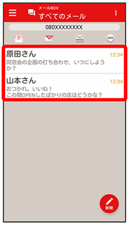 新着のMMS/SMSを受信すると、新着メッセージの通知と、通知アイコンが表示されます。