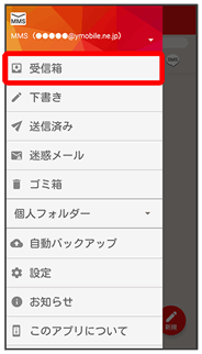 新着のMMSを受信すると、新着メッセージの通知と、通知アイコンが表示されます。