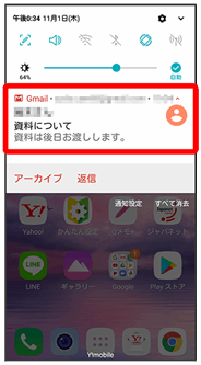 新着メールを受信するとステータスバーに