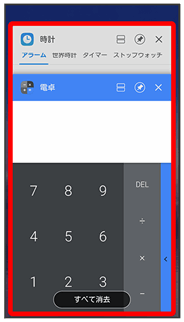 | アラーム、世界時計、タイマー、ストップウォッチを利用することができます。 | ||