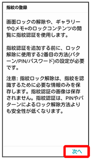 • ↓画面の指示に従って、画面ロック解除方法を選択