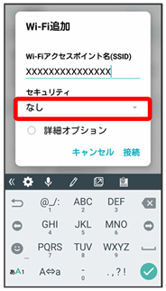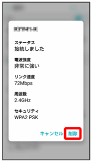 ステータス、電波強度、リンク速度、周波数、セキュリティが表示されます。