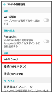 Wi-Fi Directを利用すると、アクセスポイントやインターネットを経由せずに、ほかのWi-Fi Direct規格対応機器と、簡単にWi-Fi接続することができます。