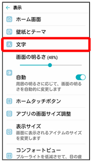 | 文字 | 画面に表示される文字の大きさやフォントを設定します。 | |