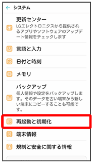 | 再起動と初期化 | 自動再起動の設定や、ネットワーク設定のリセット、アプリの設定のリセット、初期状態にリセットができます。 | |