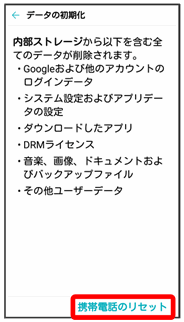 | 端末情報 | 端末の状態や法的情報、Androidのバージョンを確認できます。 | |