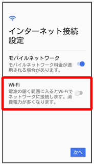 はじめて本機の電源を入れたときは、初期設定画面が表示され、Wi-FiやGoogle™ アカウントなどの設定を行うことができます。画面の指示に従って、各項目を設定してください。