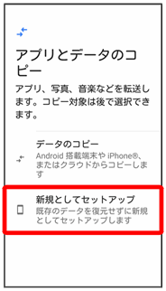 をタップすると、Google アカウントを設定しているほかの端末からデータをコピーできます。画面の指示に従って操作してください。