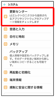 - 必要なデータはソフトウェア更新前にバックアップすることをおすすめします(一部ダウンロードしたデータなどは、バックアップできない場合もあります)。システムアップデート前に本機に登録されたデータはそのまま残りますが、本機の状況(故障など)により、データが失われる可能性があります。データ消失に関しては、当社は責任を負いかねますので、あらかじめご了承ください。